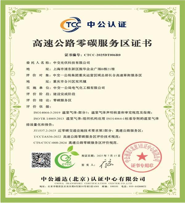 近日,中交一公局電氣化公司重慶高速光伏項目傳來(lái)喜訊,合長(cháng)高速草街服務(wù)區正式通過(guò)第三方機構的碳中和評價(jià),獲得“高速公路零碳服務(wù)區認證”...