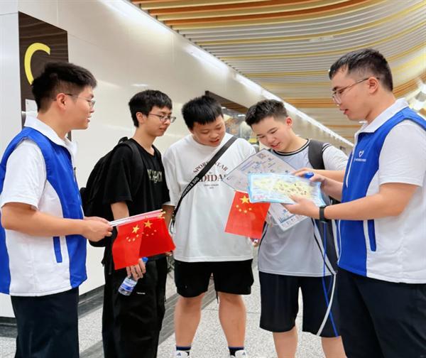 中交一公局電氣化公司成都地鐵30號線(xiàn)項目“藍馬甲”志愿者積極響應世運會(huì )賽事服務(wù)號召,走進(jìn)地鐵17 號線(xiàn)機投橋站,與中交成都軌道交通投資建設有限公司攜手組建志愿小隊..